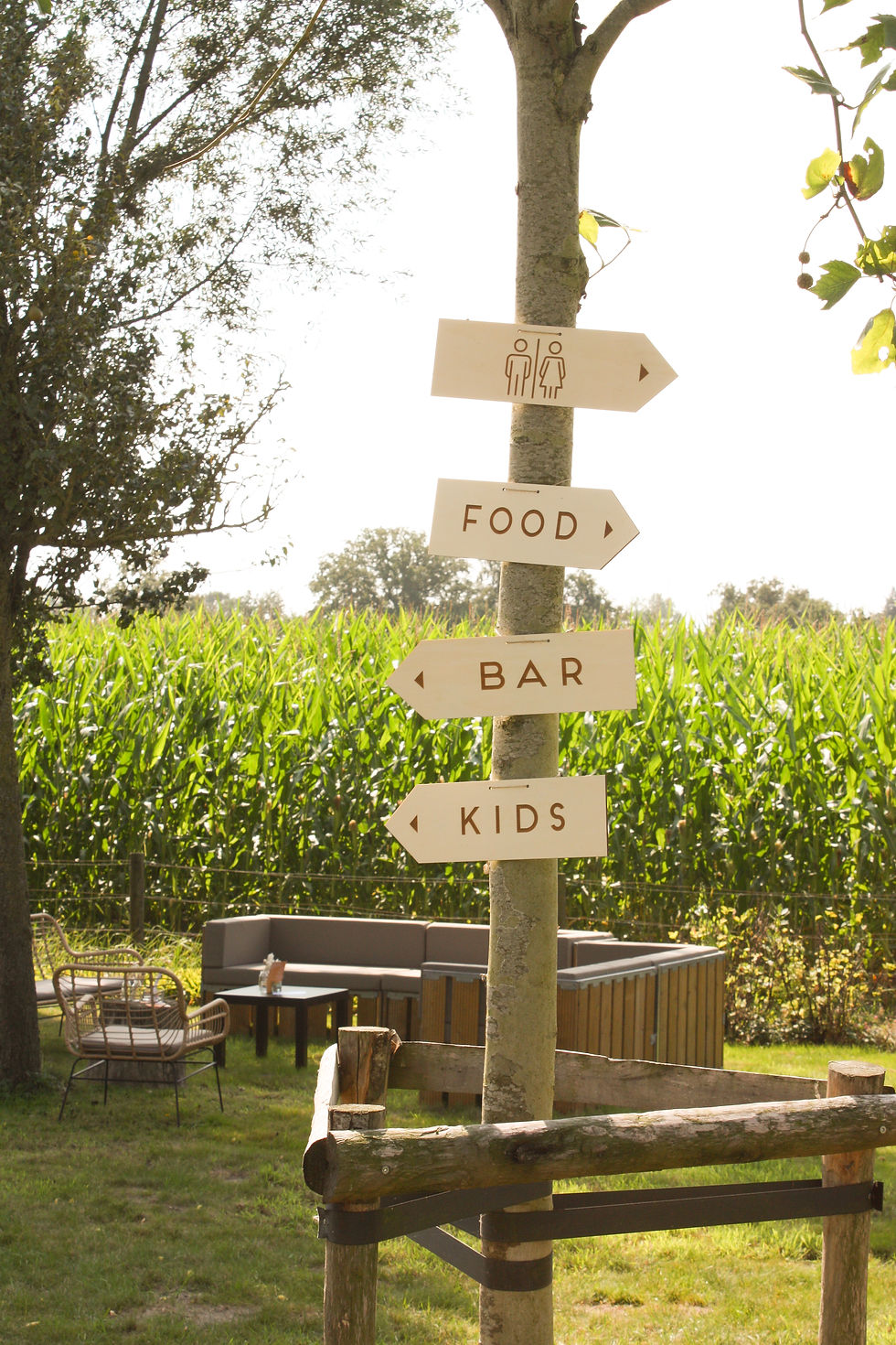 Een stijlvol welkomstbord, een persoonlijk gastenboek, een verfijnd ringendoosje of een subtiele boodschap op een elegante spiegel – elk stuk draagt bij aan de sfeer en maakt het totaalplaatje compleet.